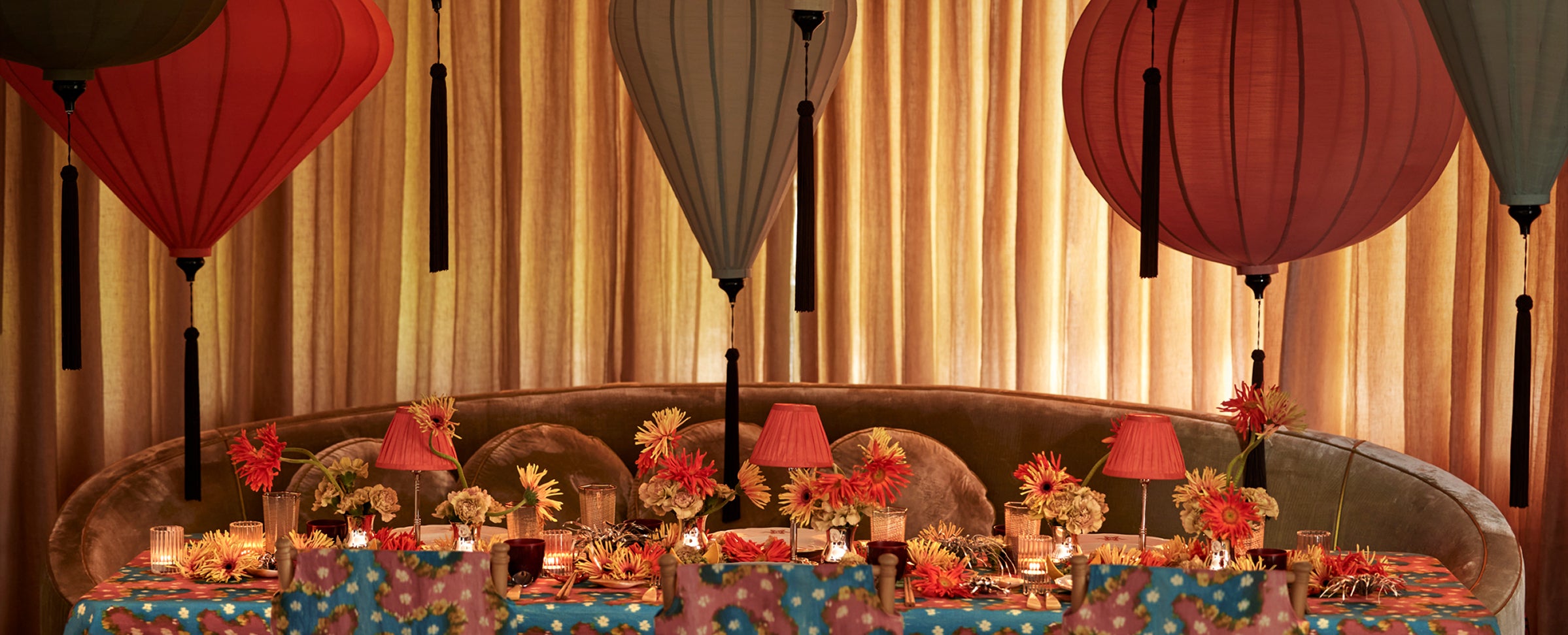 Bring the weird and wonderful to your holiday table. Bosch-inspired glass ornaments bloom from a twisted garden atop ecru-checkered linens...